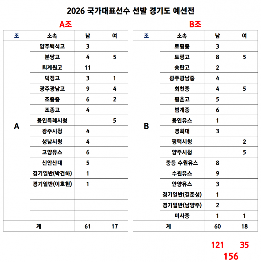 <!-- 엑셀서식 테이블 수정을 위한 캔버스. tableFix() 연동시 필요 jwshin --><!-- 엑셀서식 테이블 수정을 위한 캔버스. tableFix() 연동시 필요 jwshin -->2026 국가대표선수선발 경기도예선전